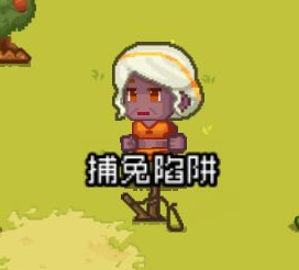 先找到一个长树枝,用尖石削两次变成短木棍,再用尖石削一次变成标桩。找到两根丝线组合成绳子,将绳子系在标桩上,就做成了一个捕兔陷阱。