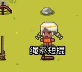 石斧是砍柴必要的工具,生火之前也要准备一些柴火。先找到一根长树枝,用尖石削两下得到短木棍。再制作一根绳子,将短木棍和绳子组合在一起获得绳系短棍。
