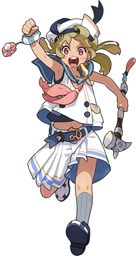 正义撞击:朝自身前方发射巨大炮弹,对命中的敌人造成水属性伤害(随自身强化效果数越多伤害up)+顿足效果【技能槽:630】