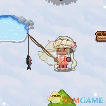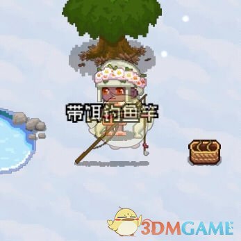 14、现在拿着钓鱼竿跟蠕虫,去雪地找冰洞~