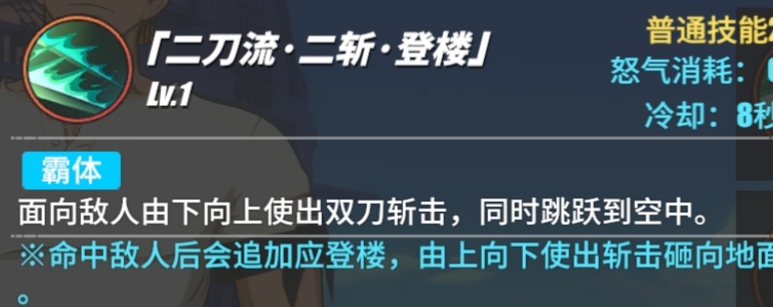 技能二:二刀流 二斩 登楼