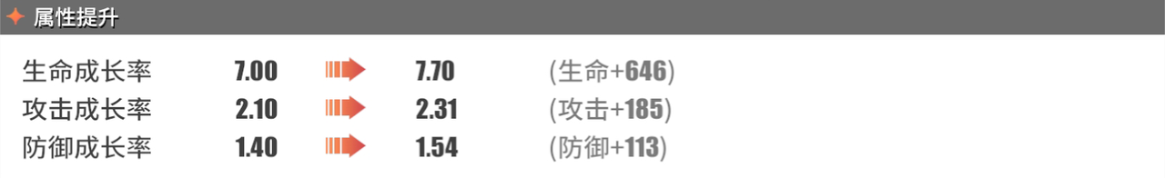防御成长率:1.40→1.54(防御+113)