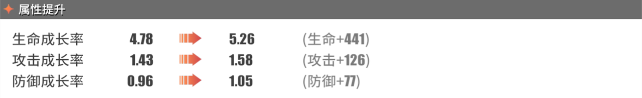 生命成长率:4.78→5.26(生命+441)