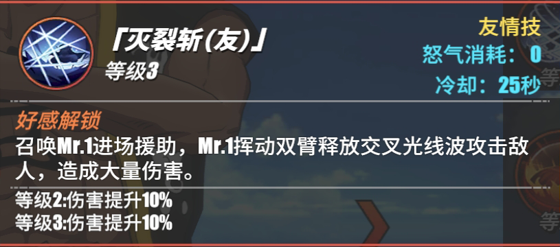 召唤Mr.1进场援助,Mr.1挥动双臂释放交叉光线波攻击敌人,造成大量伤害。