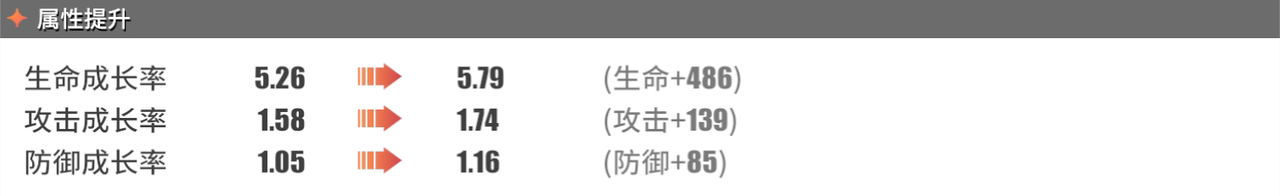 防御成长率:1.05→1.16(防御+85)