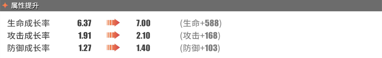 攻击成长率:1.91→2.10(攻击+168)