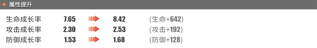 防御成长率:1.53 →1.68(防御+128)
