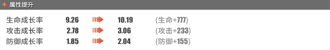 攻击成长率:2.78→3.06(攻击+233)