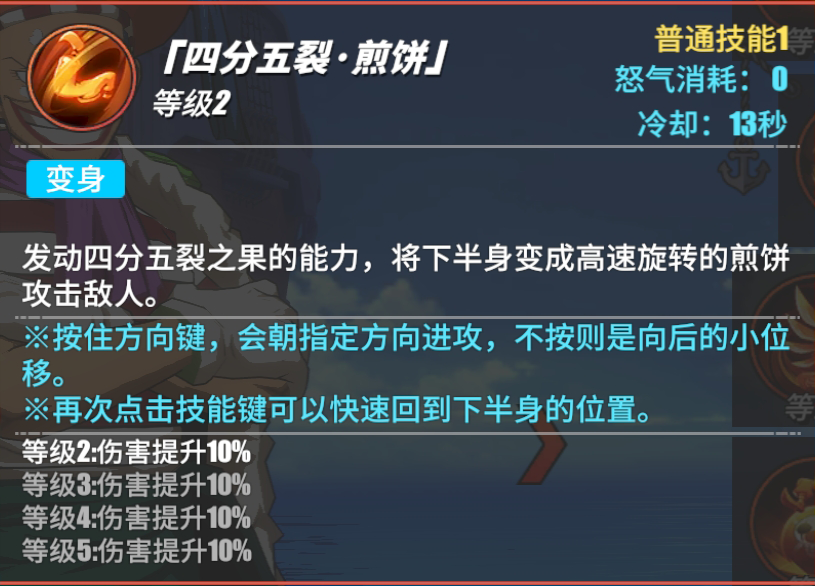 普通技能1:【四分五裂·煎饼】