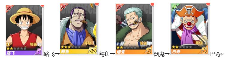 上阵伙伴搭配推荐:艾斯→巴奇→导航员奈美→薇薇→佐罗→山智→Mr.2→甘·福尔(伙伴效果:获得20%同类型伙伴的属性增益)
