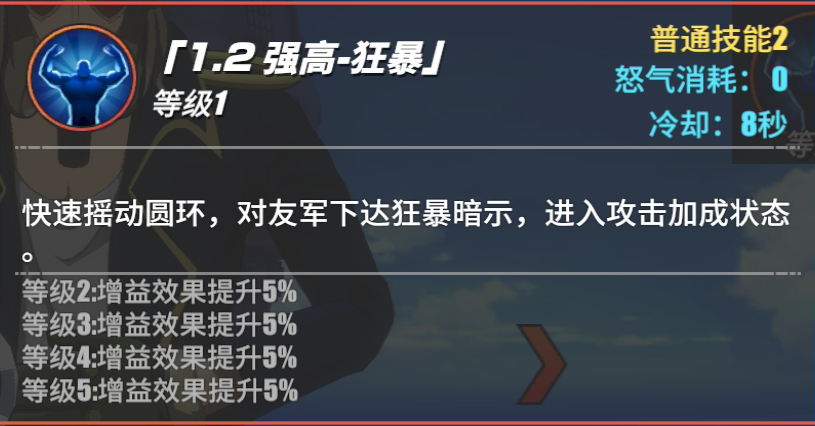快速摇动圆环,对友军下达狂暴暗示,进入攻击加成状态。