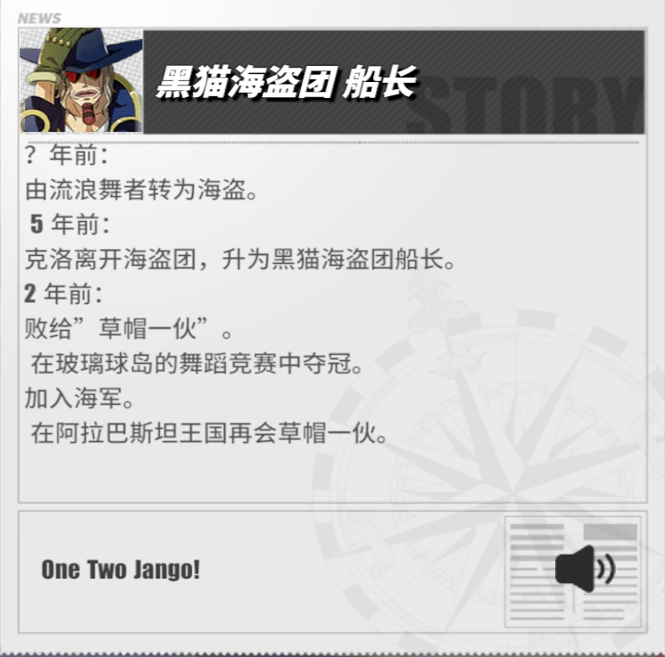 黑猫海盗团的第二任船长。从舞蹈家改行成为海盗,按计划代替下船的克洛成为船长。