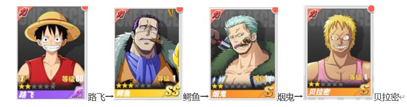 上阵伙伴搭配推荐:艾斯→导航员奈美→薇薇→佐罗→山智→Mr.2→克洛→甘·福尔。(伙伴效果:获得20%同类型伙伴的属性增益)