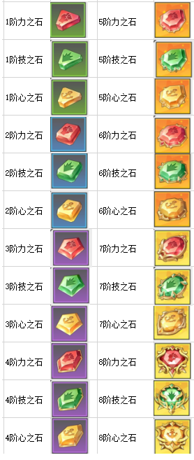 2、按属性分为:心之石、力之石、技之石;