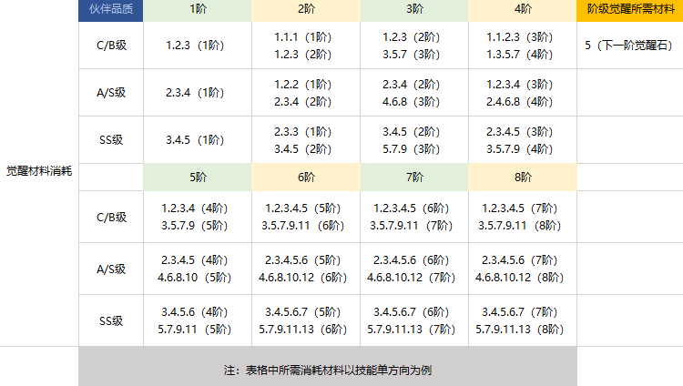 4、不同觉醒阶级对应的觉醒石不同。