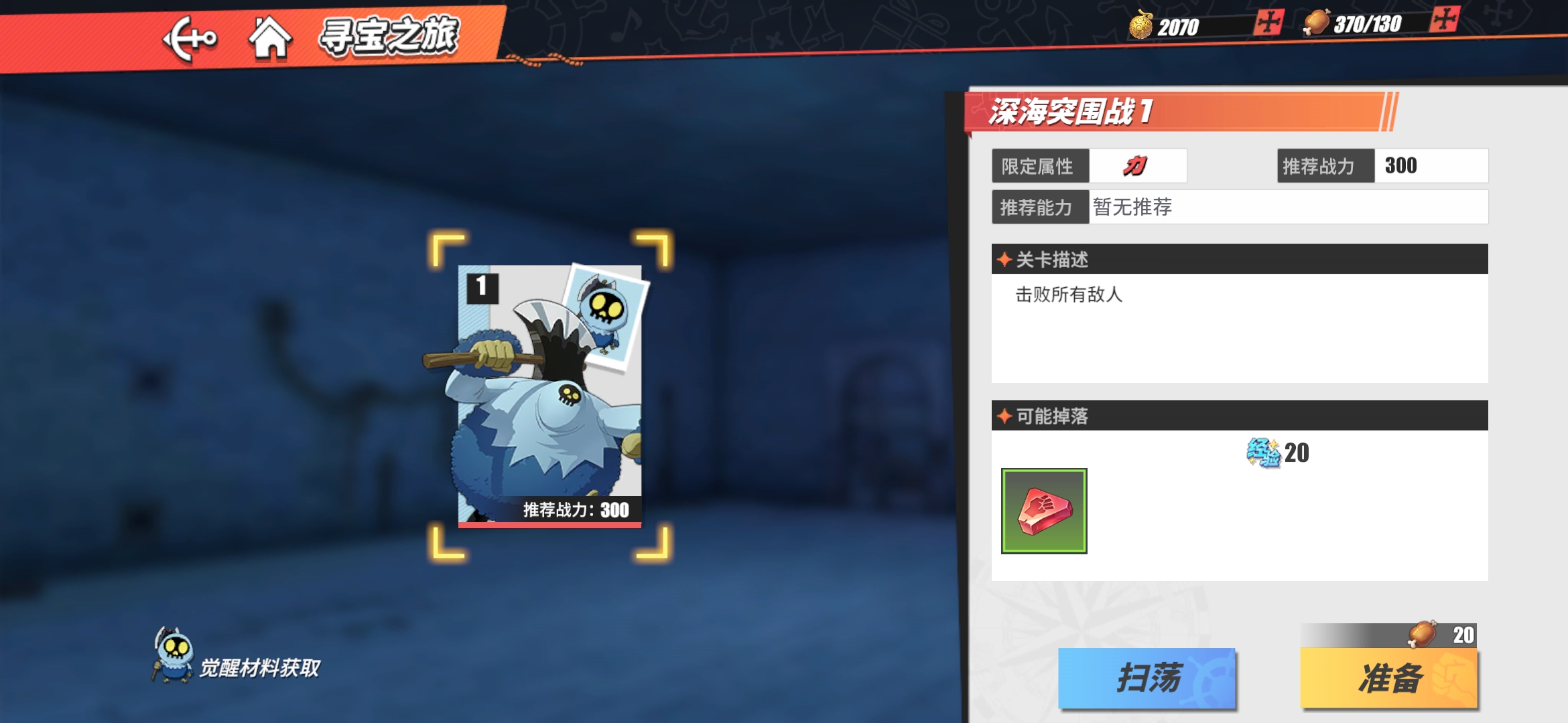 这个副本是用来刷觉醒材料的,每天开启的副本都不一样。这里没有自动战斗,但是却有扫荡功能,只需通关一遍就能进行扫荡了,虽然没有自动战斗,却也省了不少的力气。