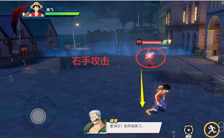 这一关不需要使用自己的伙伴,而是使用系统设定的路飞。与烟鬼的战斗中,他会使用自己的进阶激斗技能【白色】。