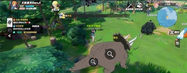玩家前往西北边的探险家营地找到严肃的探险家,寻找到在散步的三角龙