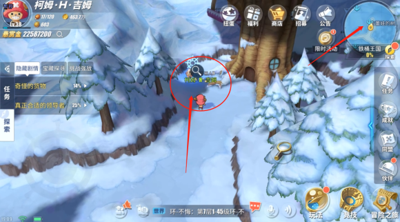 冬岛里比较特殊的树就是那个可以传送去城堡的那颗树附近,找到一个灰扑扑的蘑菇,返回拿去给商人康康。