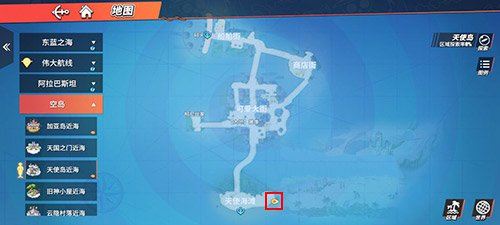 这一空岛的藏宝部位实际上非常容易就能寻找的,便是在天使之岛,如下图所显示的部位,次之赶到右下方的这一部位,便是在天使之沙滩这儿。