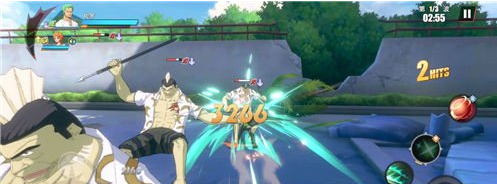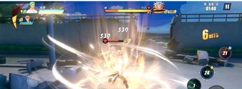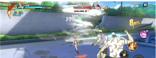 第三关BOSS小八,前面提到了他的一些招式以及躲避的技巧,所以面对他,玩家不需要害怕他,直接用奈美打完一套后,换佐罗上场。每个角色在使用连招的时候,建议大家都将爆气技能使用之后再使用连招。