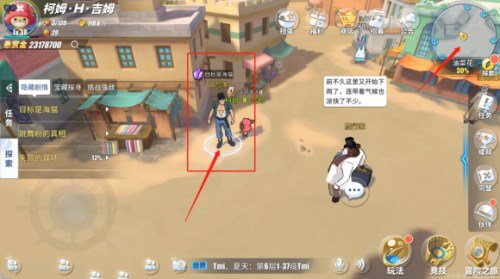 从餐厅出来, 左边码头上有冒险家的身影,以为他要对海猫动手了,赶紧阻止他。