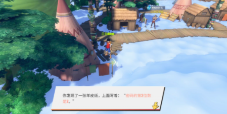 第一个线索在东北方向的小木屋后面,玩家来到这里会看见有一个区域在发光。在这里我们可以得到一个信息——密码的第1位数字比第4位数字大。