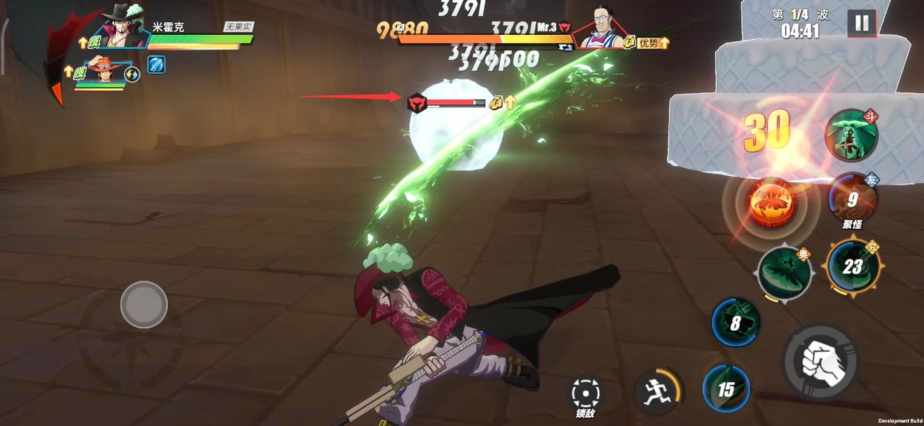 躲避技巧:Mr.3会先变成蜡球,然后再进行发动攻击,此时我们可以借助这个时间闪避拉开距离,若距离较近的情况下,大家也可以绕着弯闪避。