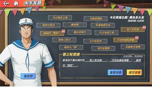 航海王热血航线曾混迹于魔谷镇的他答案是什么?《航海王热血航线》游戏中今天的主题竞猜已经开启了,主题就是黄色系头发,那么是谁呢?今天小编就给大家介绍一下航海王热血航线曾混迹于魔谷镇的他答案。