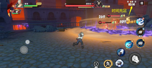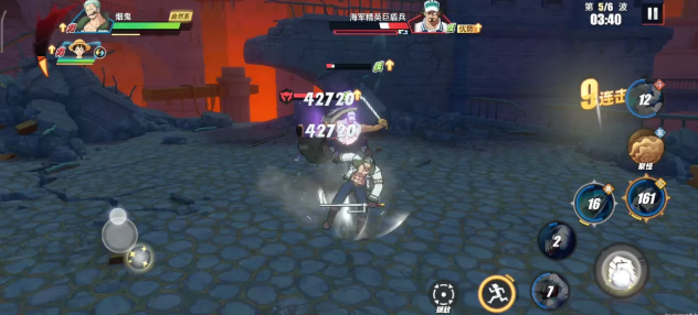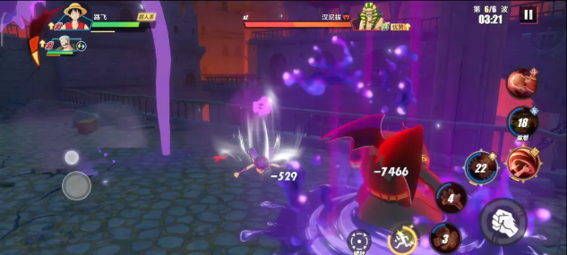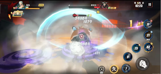 第一波怪刚秒完,第二波就应该入场了,此时我们的技能处于冷却中,无法再打出连招。这里大家可以替换路飞登场,并用他再次打出连招。不过大家也可以不替换伙伴,等烟鬼技能冷却结束后再发动攻击。
