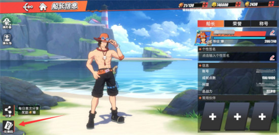 注意:玩家在完成伟大航程3-4「海盗“小丑巴奇”」关卡之后,才会开启兑换码功能。