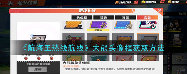 以上就是《航海王热血航线》大熊头像框获取方法的全部内容了,更多手游攻略请关注易采游戏网!