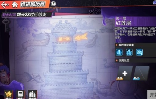 进入游戏界面后,点击游戏界面右上方“推进城之乱”按钮,再点击左侧“推进城历练”就可以进入该模式。