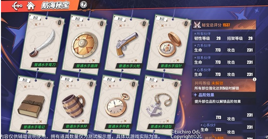 4.所有秘宝部位的强化等级都满足条件时,航海秘宝的共鸣等级将提升,解锁独特的共鸣效果,同时开启下一阶段的强化等级。