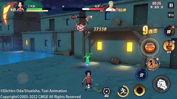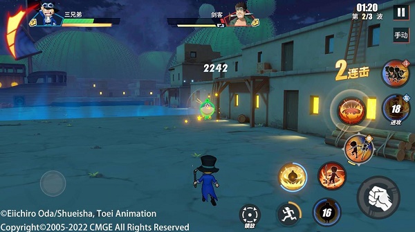 连招:2技能(召唤小萨波)+追加2技能(切换小萨波)+1技能(召唤小路飞)+2技能(召唤小艾斯)