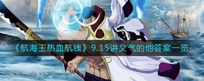 以上就是《航海王热血航线》9.15讲义气的他答案一览,更多游戏攻略请持续关注易采游戏网!