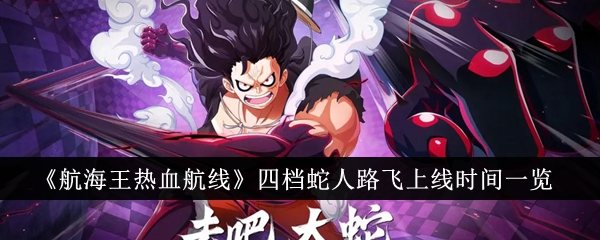 航海王热血航线四档蛇人路飞什么时候上线?这个形态的路飞相信很多玩家都十分期待吧,如今也是马上就要登场了,接下来小编会来把航海王热血航线四档蛇人路飞的上线时间介绍给大家。