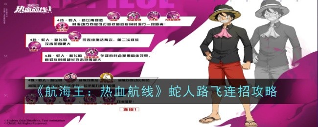 《航海王:热血航线》蛇人路飞怎么连招?航海王热血航线传奇伙伴蛇人路飞已经上线了,大家知道这个角色怎么连招吗?那么接下来就由小编来给大家介绍一下蛇人路飞的详细连招方法吧。各位可以参考一下,便于熟练掌握角色使用方式。