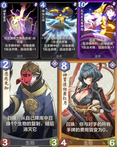 A:问得好,这是因为神霄雷符这张卡除了能打正面生物之外,在正面没有目标时是可以直接对敌方角色造成伤害的(甚至能穿过法术免疫),这张卡要是用得好,它就是一个不用减费就是0费的小火球。