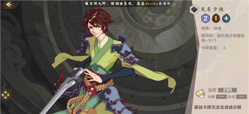 面对土的对局,劣势局。很难处理无名少侠这类效果的牌。无名少侠的种族是侠客,受伤的时候,我方部属随机获得+1/+1。