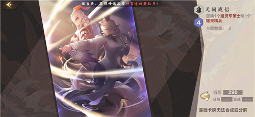 起手的时候,你需要留下1-3的低费卡,最好留下一费的随从,除非摸到一些特殊的卡,比如四费卡——无间战侣,可以留下来。无间战侣可以召唤1个精灵军策士与1个耀灵精兵,可以发挥很大的作用。