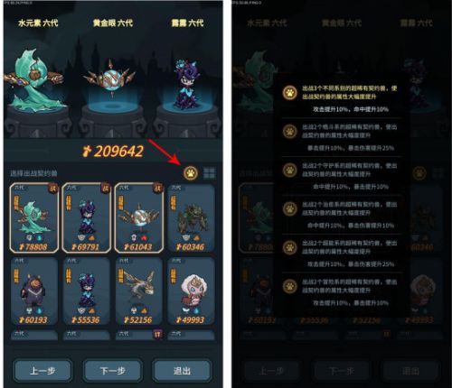 3、随着契约兽的等级提升,羁绊组合也会提升更强大的加成效果。