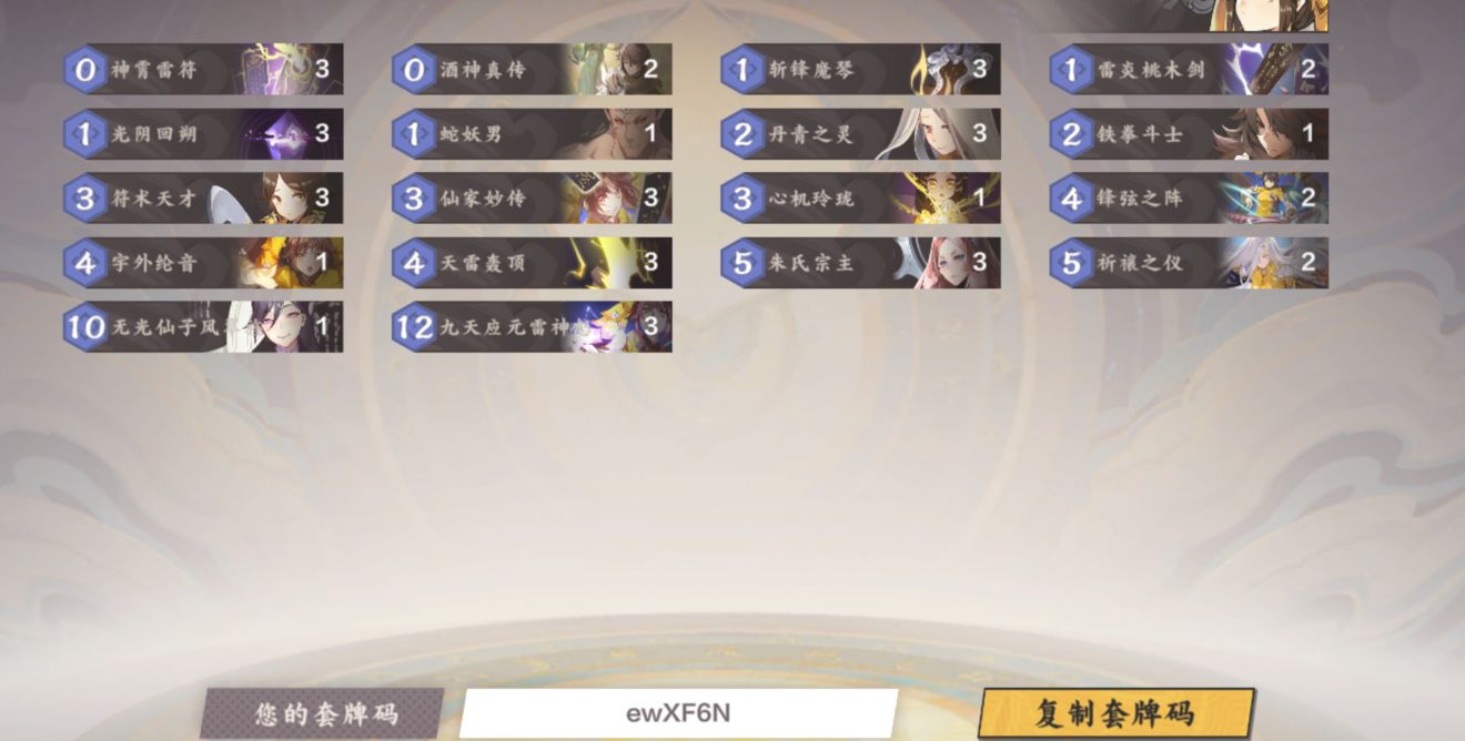 红橙2卡非必需,可替换,核心就是前3费苟,利用丹青和天才刷低费法术,然后利用朱宗主压血量最后九天加法术回收斩杀,对土木大劣,对金64开,不要让对面协战随从大量站场,跟对面换手牌就行了,对面耗不过的,打阴阳灵风都是大优,水系55开。