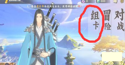 1、玩家首先进入游戏,然后在主界面右侧找到组卡,