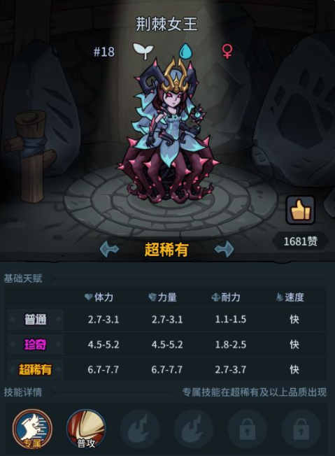 专属技能:荆棘女王(治愈系):击杀敌人时,回复主人2.0%最大生命。