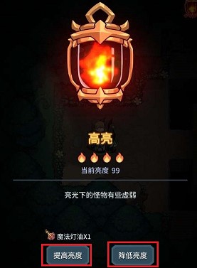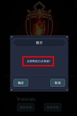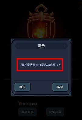 4、如果要增加亮度就点击【提升亮度】就可以了,但是需要注意的是每次提升亮度需要消耗一个【魔法灯油】,每个【魔法灯油】可以提升25的亮度