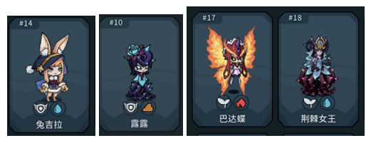 零氪玩家的前期推荐:兔子+露露+巴达蝶(后面换成荆棘女王)