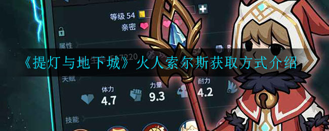 提灯与地下城中很多小伙伴都很想知道游戏中守护能力比较强的火人索尔斯应该怎么获得,今天小编给大家带来了《提灯与地下城》火人索尔斯获取方式介绍,感兴趣的小伙伴一起来看看吧。