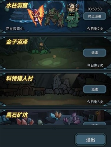 派遣优先水柱洞窟和金子沼泽,水柱洞窟产出提升升级生命之树的材料,金子沼泽产出金币,这两个都是比较重要的资源