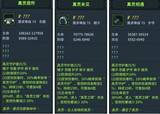 加起来就能凑成头、衣服,披风,鞋子、护手五件套,形成一个3真灵套和一个2日晕套的加成互补!